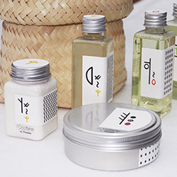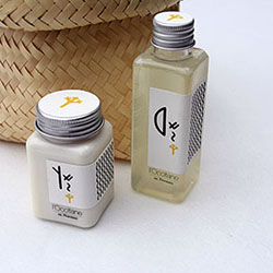 Voulant m’amuser graphiquement, j’ai joué sur un langage codé : chaque produit a des signes bien spécifiques définissant sa fonction, son utilité, etc. J’ai pensé à garder le côté naturel des produits en le mettant en avant par une étiquette très épurée, où il s’y trouve peu d’information / le logo de cette marque est lui-même placé de manière « discrète ».